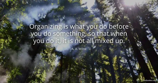 Milne, A. A. (2026, January 14). Organizing is what you do before you do something, so that when you do it, it is not all mixed up. FixQuotes. https://fixquotes.com/quotes/organizing-is-what-you-do-before-you-do-something-23665/