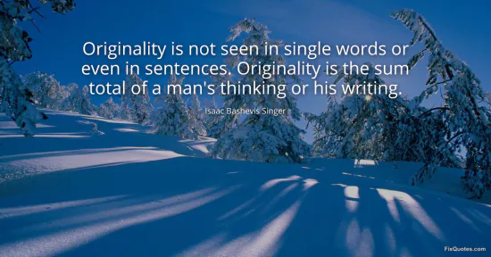 Singer, Isaac Bashevis. "Originality is not seen in single words or even in sentences. Originality is the sum total of a man's thinking or his writing." FixQuotes. January 17, 2026. https://fixquotes.com/quotes/originality-is-not-seen-in-single-words-or-even-60709/.