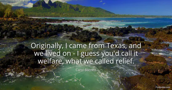 Burnett, Carol. (2026, January 15). Originally, I came from Texas, and we lived on - I guess you'd call it welfare, what we called relief. FixQuotes. https://fixquotes.com/quotes/originally-i-came-from-texas-and-we-lived-on-i-157896/