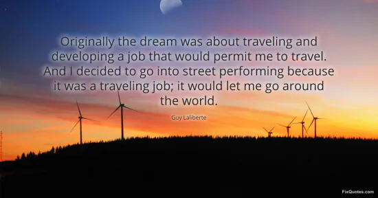 Laliberte, Guy. (2026, January 15). Originally the dream was about traveling and developing a job that would permit me to travel. And I decided to go into street performing because it was a traveling job; it would let me go around the world. FixQuotes. https://fixquotes.com/quotes/originally-the-dream-was-about-traveling-and-67934/