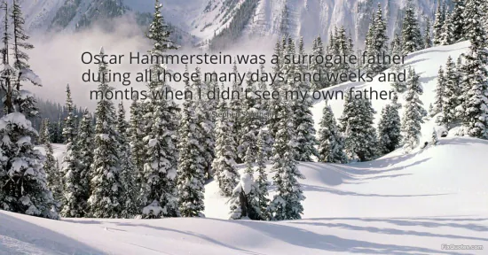 "Oscar Hammerstein was a surrogate father during all those many days, and weeks and months when I didn't see my own father." FixQuotes, 15 Jan. 2026, https://fixquotes.com/quotes/oscar-hammerstein-was-a-surrogate-father-during-116954/. Accessed 13 Feb. 2026.