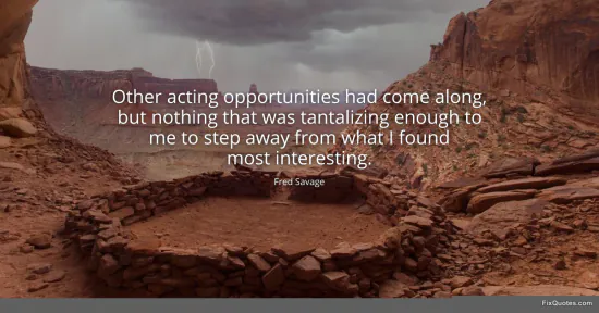 Savage, Fred. (2026, January 16). Other acting opportunities had come along, but nothing that was tantalizing enough to me to step away from what I found most interesting. FixQuotes. https://fixquotes.com/quotes/other-acting-opportunities-had-come-along-but-84205/