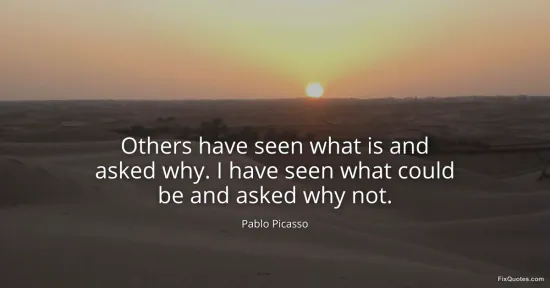Picasso, Pablo. "Others have seen what is and asked why. I have seen what could be and asked why not." FixQuotes. January 15, 2026. https://fixquotes.com/quotes/others-have-seen-what-is-and-asked-why-i-have-9475/.