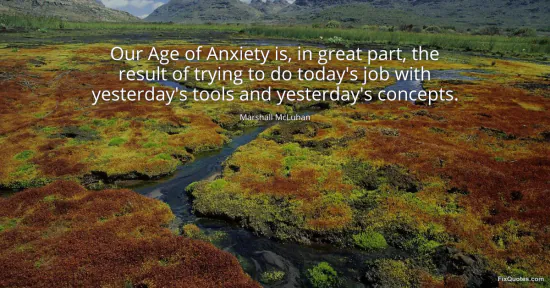 McLuhan, Marshall. (2026, January 15). Our Age of Anxiety is, in great part, the result of trying to do today's job with yesterday's tools and yesterday's concepts. FixQuotes. https://fixquotes.com/quotes/our-age-of-anxiety-is-in-great-part-the-result-of-15893/