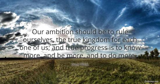 Wilde, Oscar. (2026, January 14). Our ambition should be to rule ourselves, the true kingdom for each one of us; and true progress is to know more, and be more, and to do more. FixQuotes. https://fixquotes.com/quotes/our-ambition-should-be-to-rule-ourselves-the-true-26946/