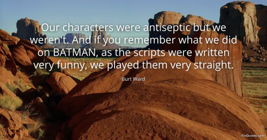 Ward, Burt. (2026, January 17). Our characters were antiseptic but we weren't. And if you remember what we did on BATMAN, as the scripts were written very funny, we played them very straight. FixQuotes. https://fixquotes.com/quotes/our-characters-were-antiseptic-but-we-werent-and-45111/