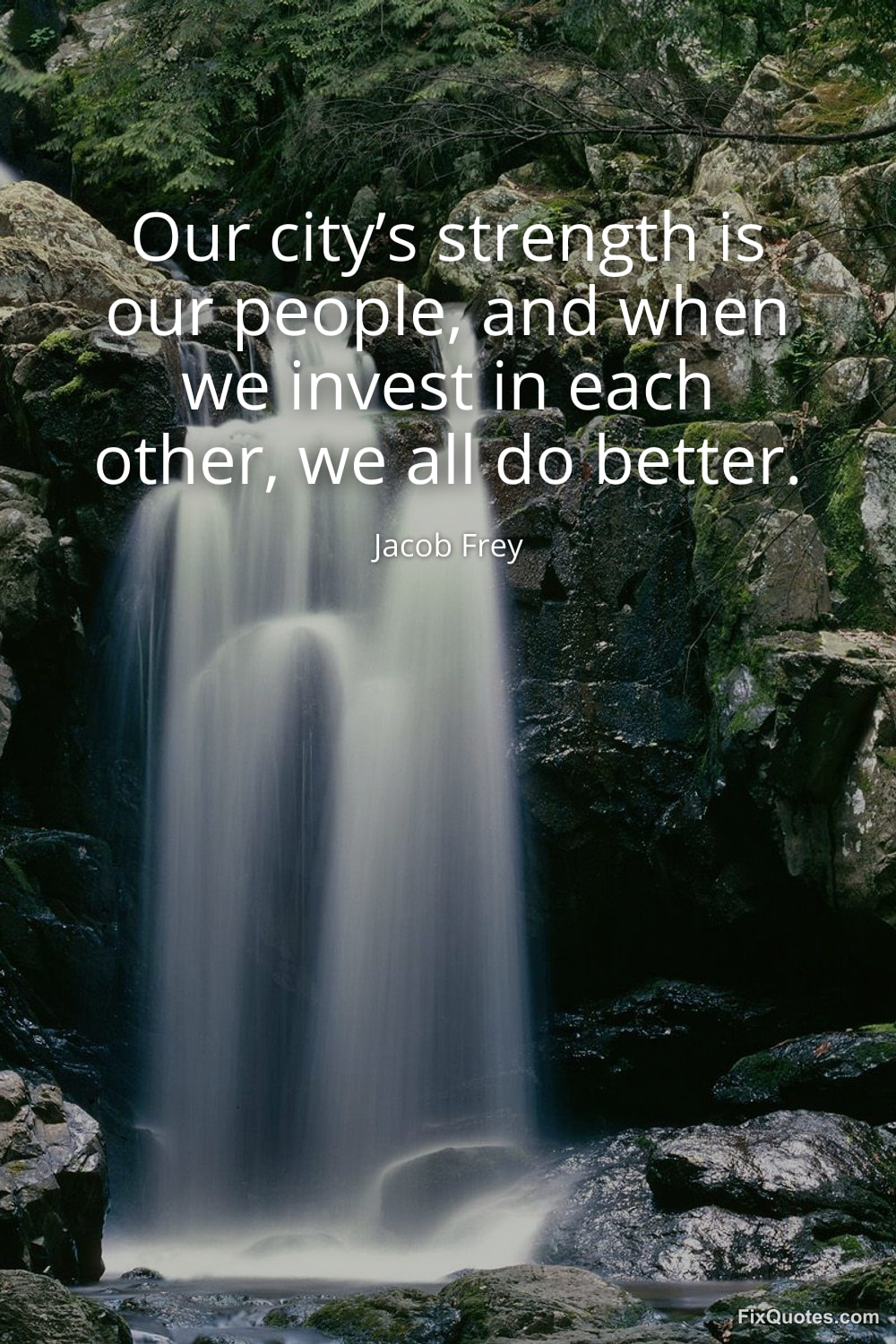 Frey, Jacob. "Our city’s strength is our people, and when we invest in each other, we all do better." FixQuotes. January 25, 2026. https://fixquotes.com/quotes/our-citys-strength-is-our-people-and-when-we-184281/.