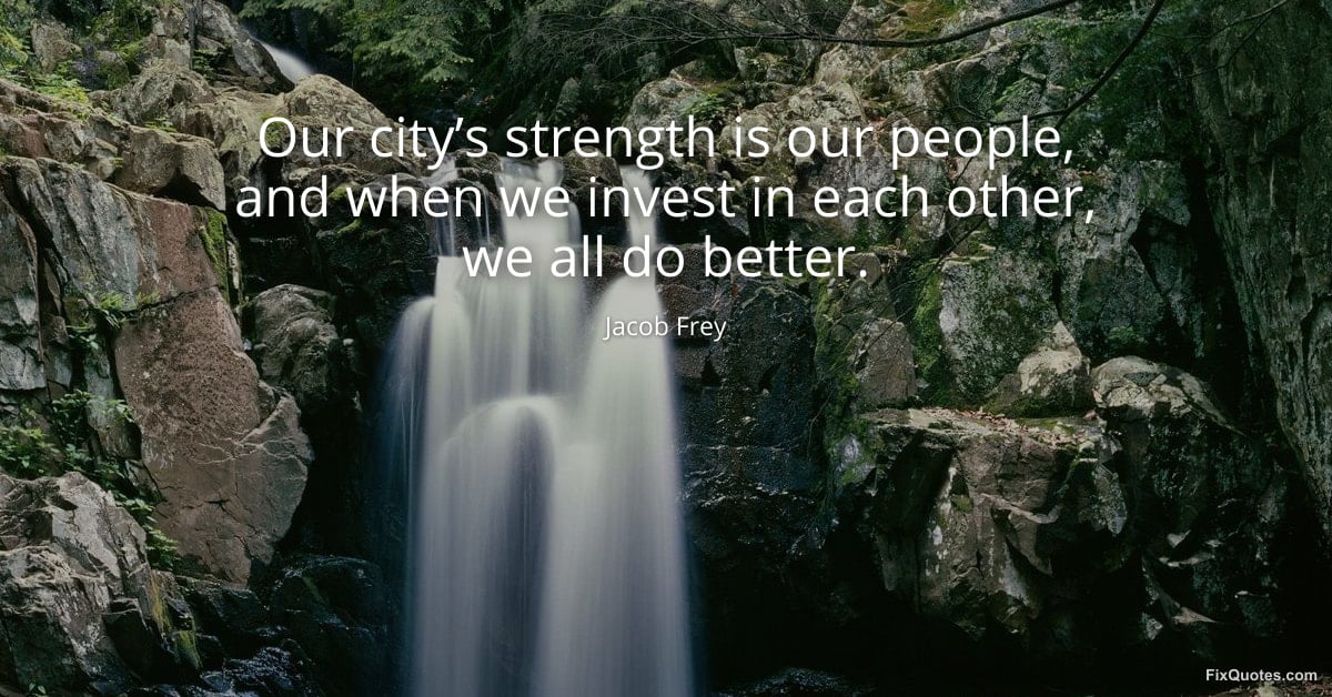 Frey, Jacob. (2026, January 25). Our city’s strength is our people, and when we invest in each other, we all do better. FixQuotes. https://fixquotes.com/quotes/our-citys-strength-is-our-people-and-when-we-184281/