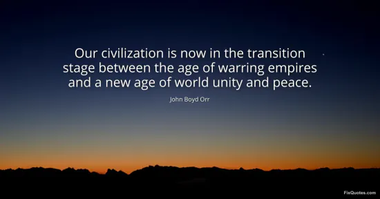 Orr, John Boyd. "Our civilization is now in the transition stage between the age of warring empires and a new age of world unity and peace." FixQuotes. January 17, 2026. https://fixquotes.com/quotes/our-civilization-is-now-in-the-transition-stage-80308/.