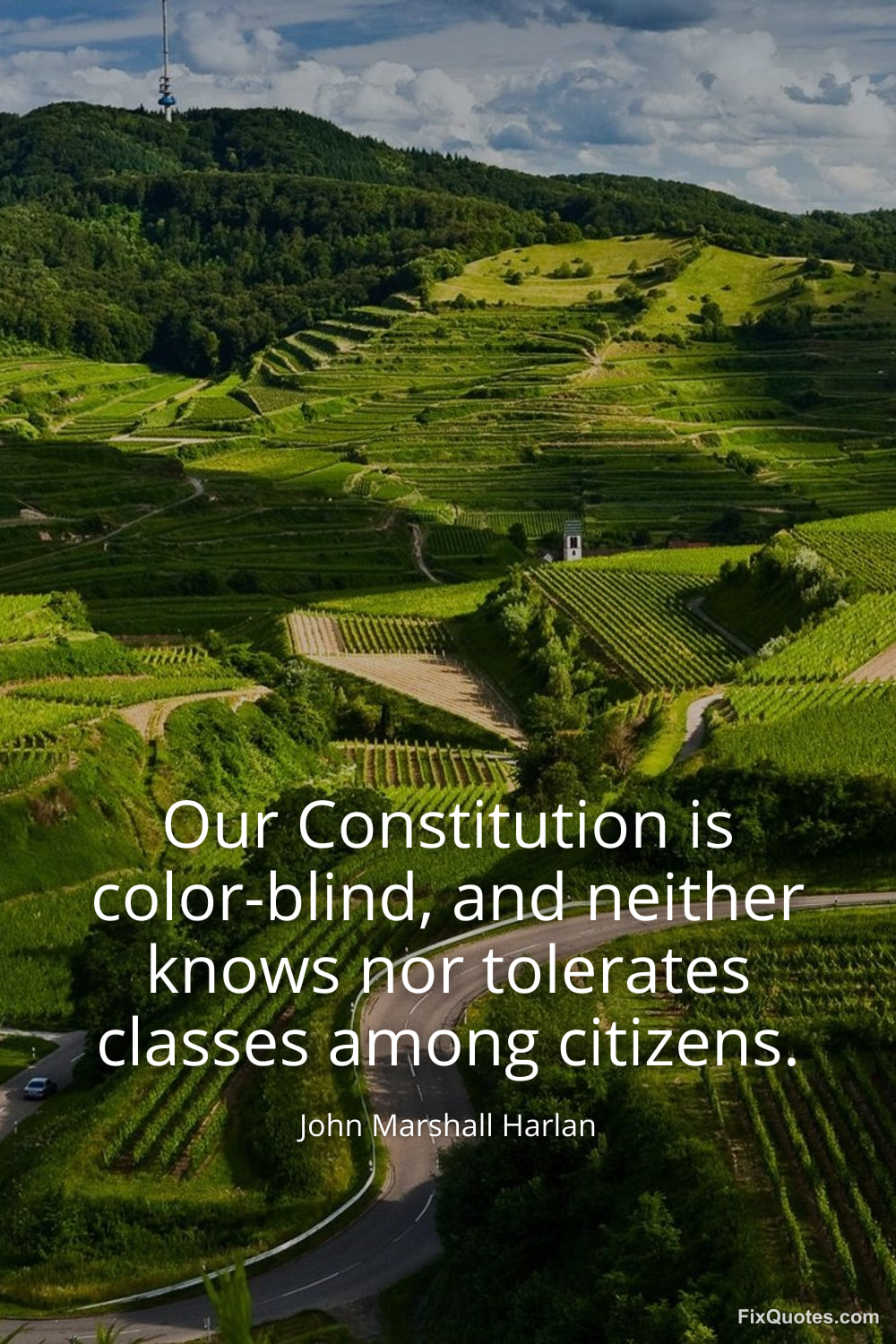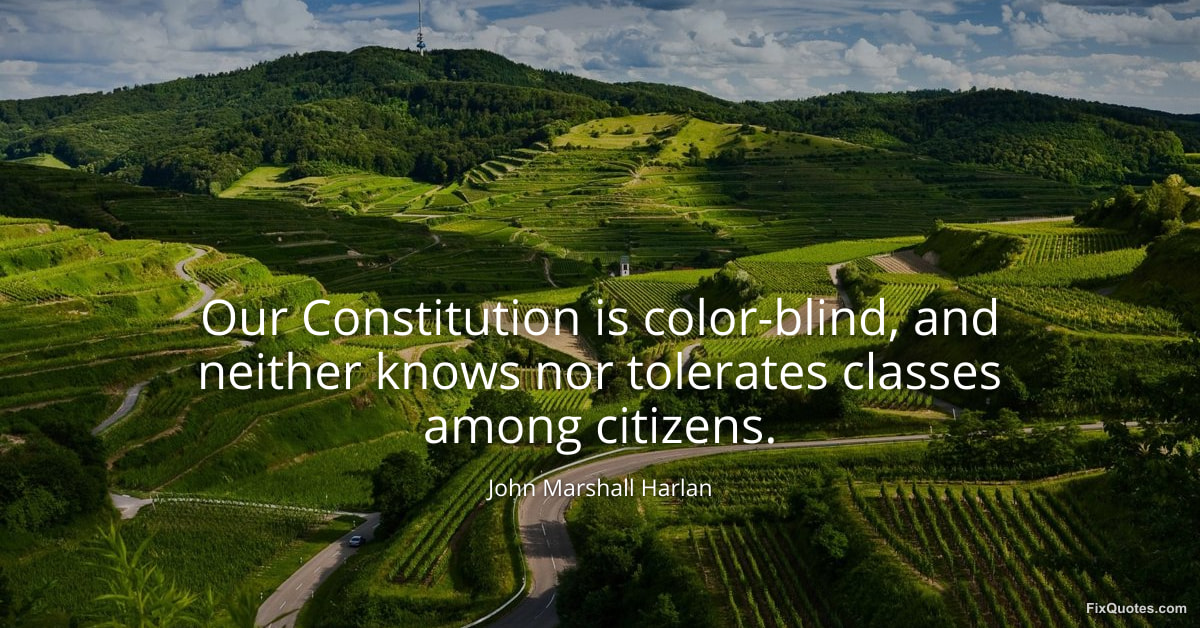 Harlan, John Marshall. "Our Constitution is color-blind, and neither knows nor tolerates classes among citizens." FixQuotes. February 16, 2026. https://fixquotes.com/quotes/our-constitution-is-color-blind-and-neither-knows-68232/.