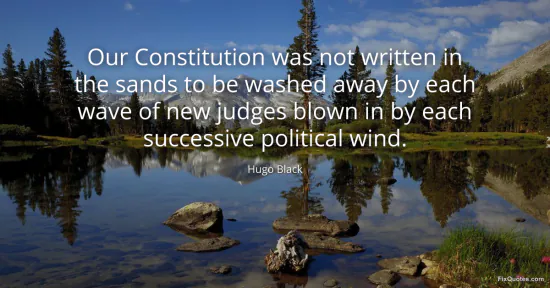 Black, Hugo. "Our Constitution was not written in the sands to be washed away by each wave of new judges blown in by each successive political wind." FixQuotes. January 17, 2026. https://fixquotes.com/quotes/our-constitution-was-not-written-in-the-sands-to-53780/.