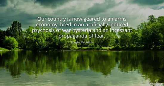 MacArthur, Douglas. (2026, February 20). Our country is now geared to an arms economy, bred in an artificially induced psychosis of war hysteria and an incessant propaganda of fear. FixQuotes. https://fixquotes.com/quotes/our-country-is-now-geared-to-an-arms-economy-bred-6504/