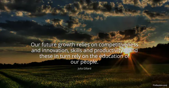 Gillard, Julia. "Our future growth relies on competitiveness and innovation, skills and productivity... and these in turn rely on the education of our people." FixQuotes. January 15, 2026. https://fixquotes.com/quotes/our-future-growth-relies-on-competitiveness-and-80574/.