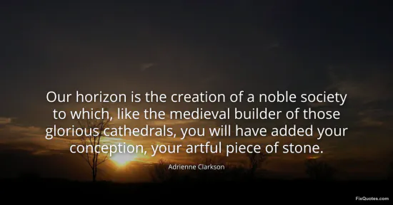 Clarkson, Adrienne. (2026, January 16). Our horizon is the creation of a noble society to which, like the medieval builder of those glorious cathedrals, you will have added your conception, your artful piece of stone. FixQuotes. https://fixquotes.com/quotes/our-horizon-is-the-creation-of-a-noble-society-to-118162/