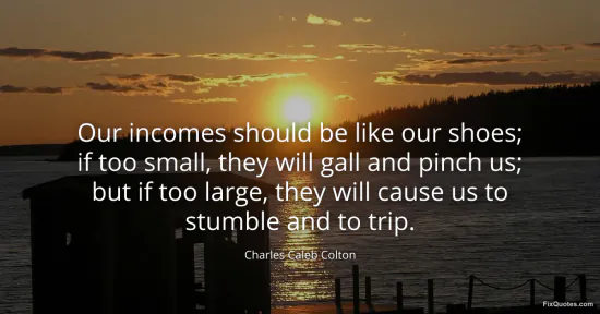 Colton, Charles Caleb. "Our incomes should be like our shoes; if too small, they will gall and pinch us; but if too large, they will cause us to stumble and to trip." FixQuotes. January 17, 2026. https://fixquotes.com/quotes/our-incomes-should-be-like-our-shoes-if-too-small-66948/.