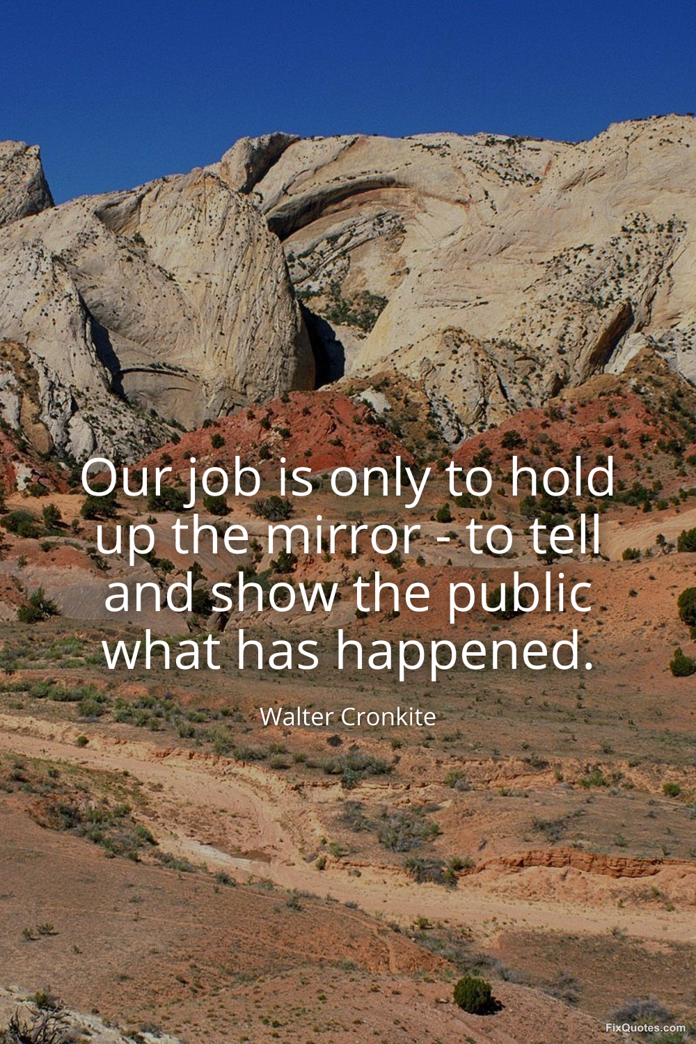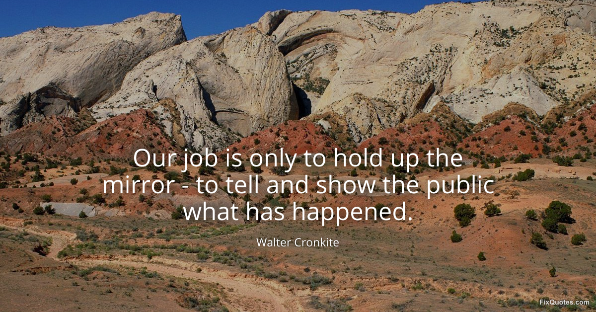 Cronkite, Walter. (2026, January 16). Our job is only to hold up the mirror - to tell and show the public what has happened. FixQuotes. https://fixquotes.com/quotes/our-job-is-only-to-hold-up-the-mirror-to-tell-84955/