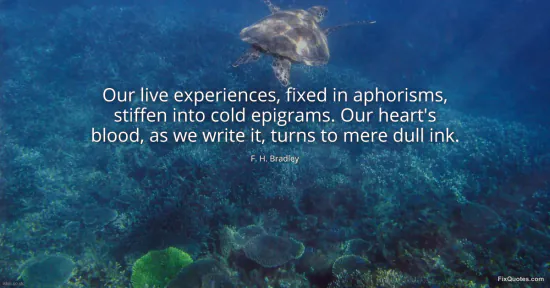 Bradley, F. H. (2026, January 15). Our live experiences, fixed in aphorisms, stiffen into cold epigrams. Our heart's blood, as we write it, turns to mere dull ink. FixQuotes. https://fixquotes.com/quotes/our-live-experiences-fixed-in-aphorisms-stiffen-15336/