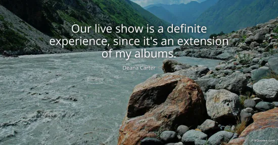 Carter, Deana. (2026, January 16). Our live show is a definite experience, since it's an extension of my albums. FixQuotes. https://fixquotes.com/quotes/our-live-show-is-a-definite-experience-since-its-111274/