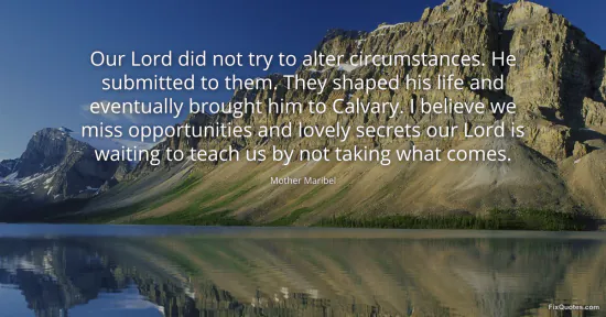 Maribel, Mother. "Our Lord did not try to alter circumstances. He submitted to them. They shaped his life and eventually brought him to Calvary. I believe we miss opportunities and lovely secrets our Lord is waiting to teach us by not taking what comes." FixQuotes. January 15, 2026. https://fixquotes.com/quotes/our-lord-did-not-try-to-alter-circumstances-he-169050/.