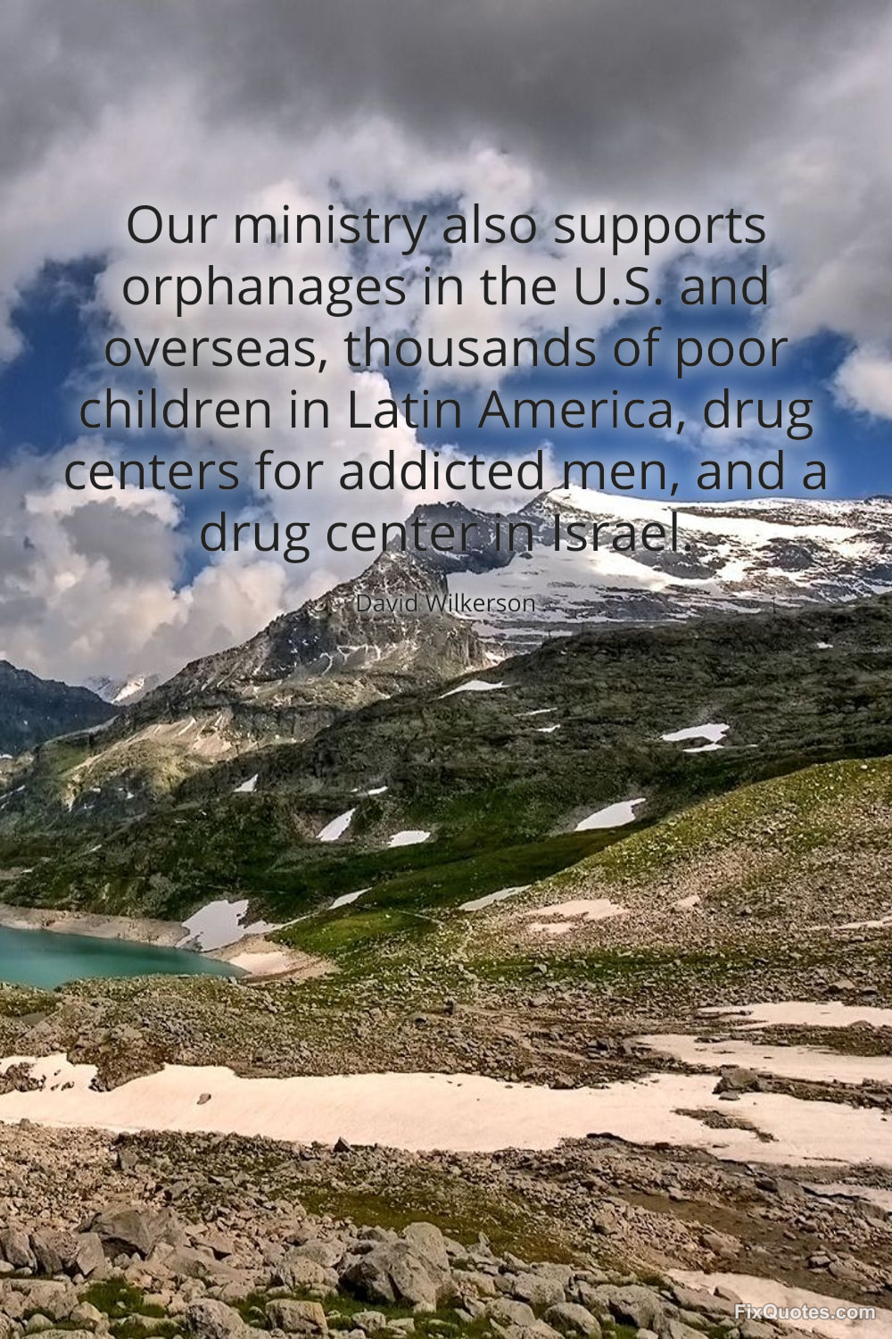 Wilkerson, David. (2026, January 17). Our ministry also supports orphanages in the U.S. and overseas, thousands of poor children in Latin America, drug centers for addicted men, and a drug center in Israel. FixQuotes. https://fixquotes.com/quotes/our-ministry-also-supports-orphanages-in-the-us-58090/
