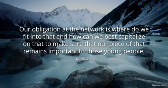 A veteran anchorman trying to sound public-spirited accidentally reveals the nervous calculus behind legacy media’s youth obsession. Brokaw frames the network’s “obligation” not as informing a new generation, but as finding “where do we fit” and how to “best capitalize” so “our piece of that remains important.” The syntax is corporate, not civic: young people appear less as citizens to be served than a contested market segment to be retained.