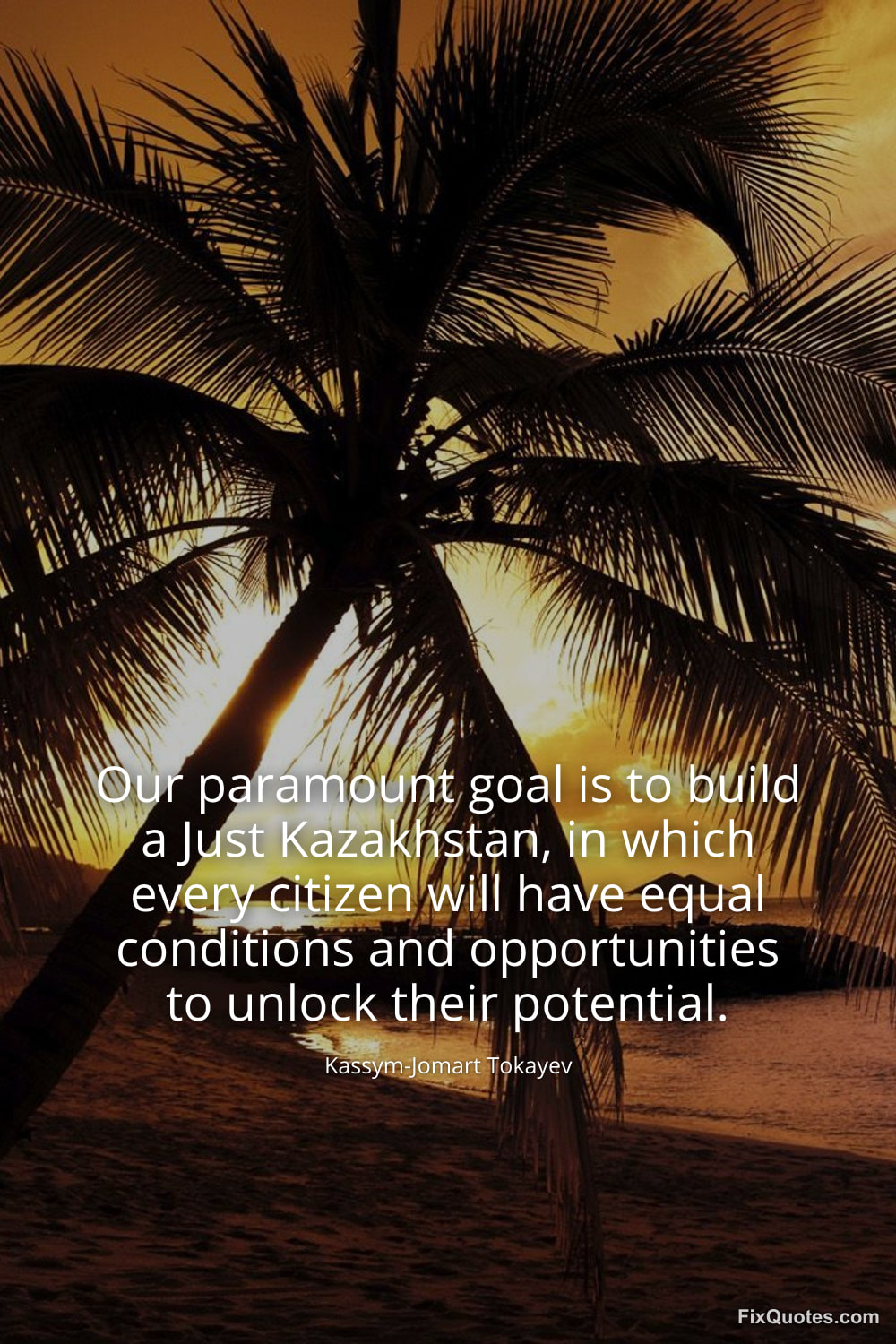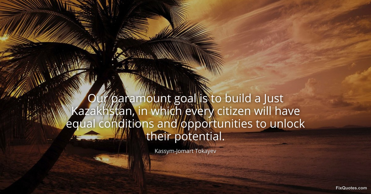 "Our paramount goal is to build a Just Kazakhstan, in which every citizen will have equal conditions and opportunities to unlock their potential." FixQuotes, 16 Feb. 2026, https://fixquotes.com/quotes/our-paramount-goal-is-to-build-a-just-kazakhstan-185540/. Accessed 19 Feb. 2026.
