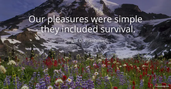Eisenhower, Dwight D. "Our pleasures were simple - they included survival." FixQuotes. Accessed February 2, 2026. https://fixquotes.com/quotes/our-pleasures-were-simple-they-included-survival-16944/.