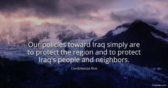 Rice, Condoleezza. (2026, January 18). Our policies toward Iraq simply are to protect the region and to protect Iraq's people and neighbors. FixQuotes. https://fixquotes.com/quotes/our-policies-toward-iraq-simply-are-to-protect-5859/