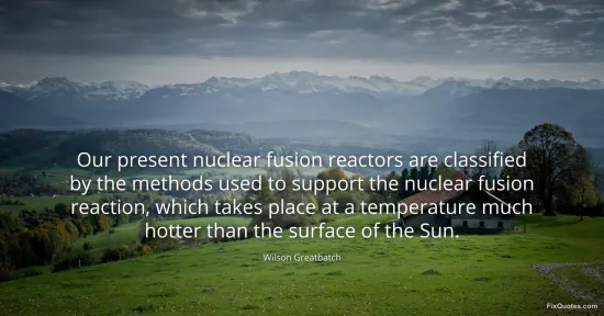 Greatbatch, Wilson. (2026, January 17). Our present nuclear fusion reactors are classified by the methods used to support the nuclear fusion reaction, which takes place at a temperature much hotter than the surface of the Sun. FixQuotes. https://fixquotes.com/quotes/our-present-nuclear-fusion-reactors-are-72212/
