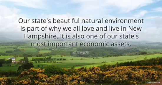 Lynch, John. (2026, January 16). Our state's beautiful natural environment is part of why we all love and live in New Hampshire. It is also one of our state's most important economic assets. FixQuotes. https://fixquotes.com/quotes/our-states-beautiful-natural-environment-is-part-121560/