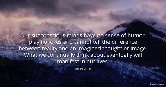 Collier, Robert. (2026, January 18). Our subconscious minds have no sense of humor, play no jokes and cannot tell the difference between reality and an imagined thought or image. What we continually think about eventually will manifest in our lives. FixQuotes. https://fixquotes.com/quotes/our-subconscious-minds-have-no-sense-of-humor-8885/