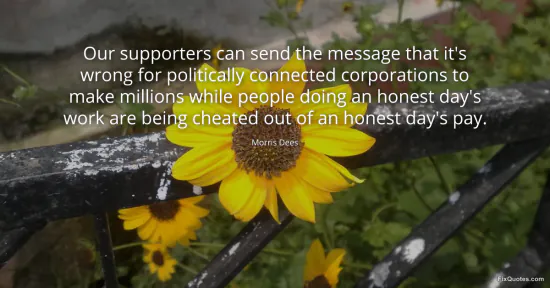 Dees, Morris. "Our supporters can send the message that it's wrong for politically connected corporations to make millions while people doing an honest day's work are being cheated out of an honest day's pay." FixQuotes. January 16, 2026. https://fixquotes.com/quotes/our-supporters-can-send-the-message-that-its-110159/.