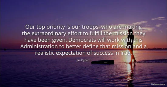 "Our top priority is our troops, who are making the extraordinary effort to fulfill the mission they have been given. Democrats will work with this Administration to better define that mission and a realistic expectation of success in Iraq"