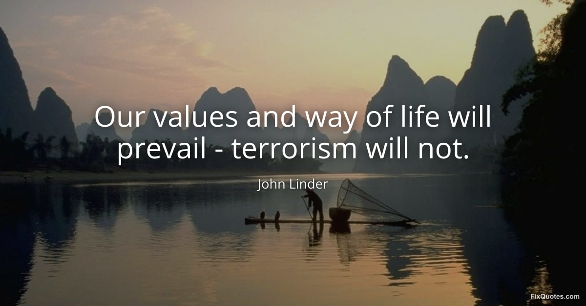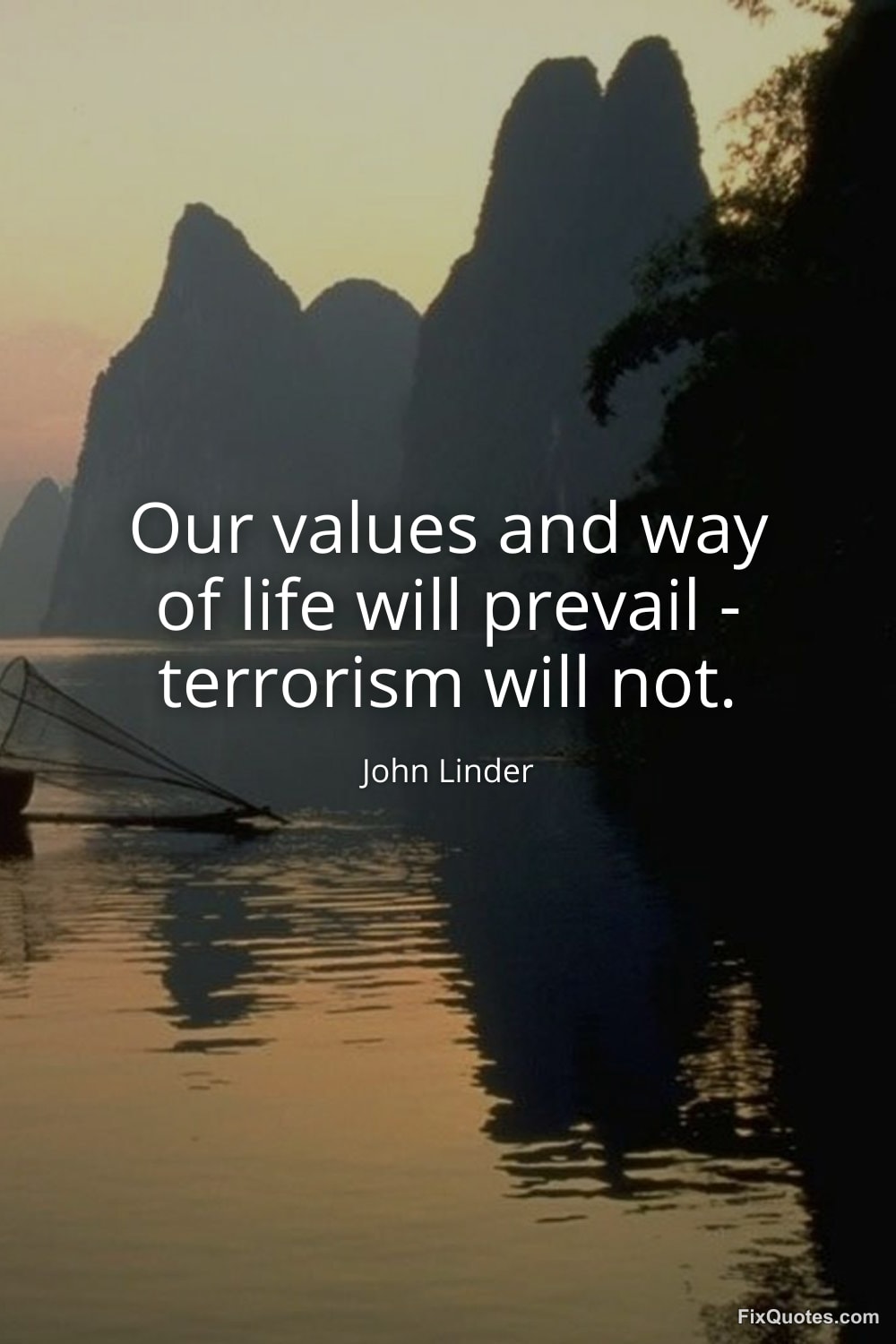 Linder, John. (2026, January 17). Our values and way of life will prevail - terrorism will not. FixQuotes. https://fixquotes.com/quotes/our-values-and-way-of-life-will-prevail-57511/