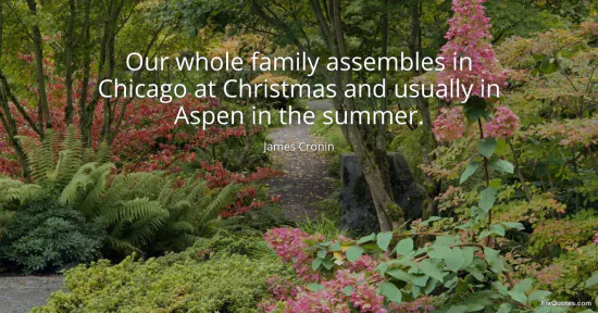 Cronin, James. "Our whole family assembles in Chicago at Christmas and usually in Aspen in the summer." FixQuotes. January 16, 2026. https://fixquotes.com/quotes/our-whole-family-assembles-in-chicago-at-125718/.