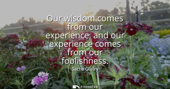 "Our wisdom comes from our experience, and our experience comes from our foolishness"