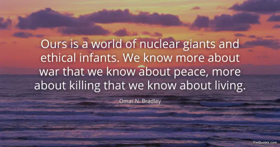 Bradley, Omar N. "Ours is a world of nuclear giants and ethical infants. We know more about war that we know about peace, more about killing that we know about living." FixQuotes. January 14, 2026. https://fixquotes.com/quotes/ours-is-a-world-of-nuclear-giants-and-ethical-6553/.