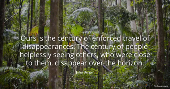 Berger, John. (2026, January 17). Ours is the century of enforced travel of disappearances. The century of people helplessly seeing others, who were close to them, disappear over the horizon. FixQuotes. https://fixquotes.com/quotes/ours-is-the-century-of-enforced-travel-of-57036/