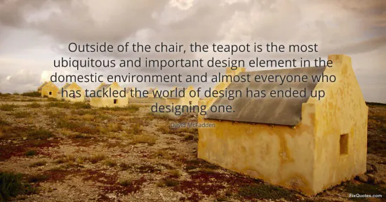 McFadden, David. (2026, January 15). Outside of the chair, the teapot is the most ubiquitous and important design element in the domestic environment and almost everyone who has tackled the world of design has ended up designing one. FixQuotes. https://fixquotes.com/quotes/outside-of-the-chair-the-teapot-is-the-most-127220/