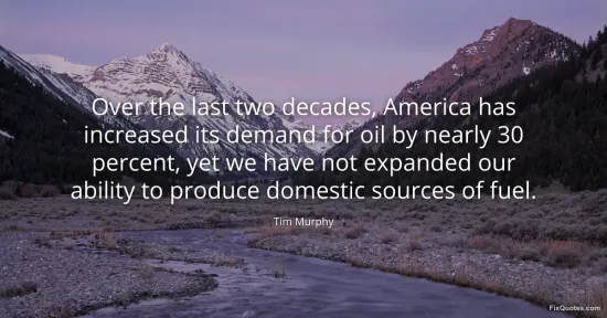 Murphy, Tim. "Over the last two decades, America has increased its demand for oil by nearly 30 percent, yet we have not expanded our ability to produce domestic sources of fuel." FixQuotes. January 15, 2026. https://fixquotes.com/quotes/over-the-last-two-decades-america-has-increased-160072/.