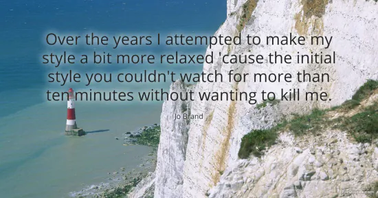 Brand, Jo. "Over the years I attempted to make my style a bit more relaxed 'cause the initial style you couldn't watch for more than ten minutes without wanting to kill me." FixQuotes. January 15, 2026. https://fixquotes.com/quotes/over-the-years-i-attempted-to-make-my-style-a-bit-165195/.