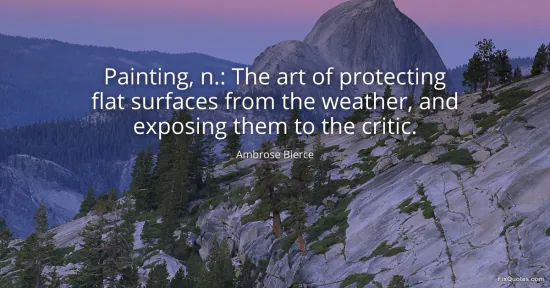 Bierce, Ambrose. "Painting, n.: The art of protecting flat surfaces from the weather, and exposing them to the critic." FixQuotes. January 17, 2026. https://fixquotes.com/quotes/painting-n-the-art-of-protecting-flat-surfaces-32968/.