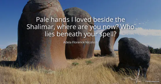 Nicolson, Adela Florence. (2026, January 17). Pale hands I loved beside the Shalimar, where are you now? Who lies beneath your spell? FixQuotes. https://fixquotes.com/quotes/pale-hands-i-loved-beside-the-shalimar-where-are-34737/