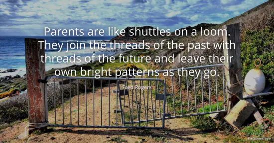 Rogers, Fred. (2026, January 15). Parents are like shuttles on a loom. They join the threads of the past with threads of the future and leave their own bright patterns as they go. FixQuotes. https://fixquotes.com/quotes/parents-are-like-shuttles-on-a-loom-they-join-the-162035/