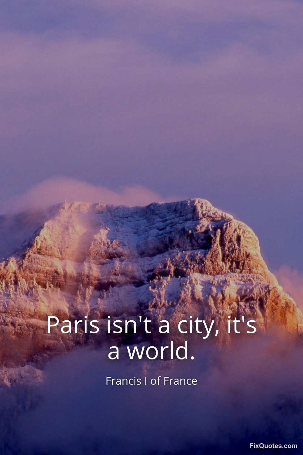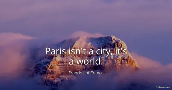 France, Francis I of. "Paris isn't a city, it's a world." FixQuotes. January 14, 2026. https://fixquotes.com/quotes/paris-isnt-a-city-its-a-world-173501/.