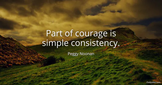 Noonan, a writer shaped by political speechmaking and public narrative, aims this at a culture that confuses intensity with integrity. “Simple” is doing a lot of work. It reframes consistency not as rigidity or boredom but as a deliberately chosen discipline, the kind that costs you opportunities to reinvent yourself for applause. The line implies that most cowardice isn’t panic; it’s drift. It’s the quiet decision to soften a principle when the room changes, to adjust your moral posture to fit the lighting.