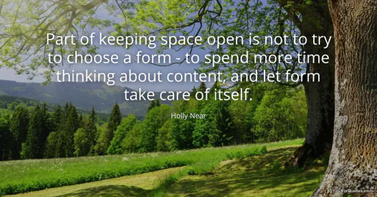 Near, Holly. (2026, January 17). Part of keeping space open is not to try to choose a form - to spend more time thinking about content, and let form take care of itself. FixQuotes. https://fixquotes.com/quotes/part-of-keeping-space-open-is-not-to-try-to-48106/