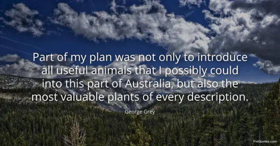 Grey, George. (2026, January 17). Part of my plan was not only to introduce all useful animals that I possibly could into this part of Australia, but also the most valuable plants of every description. FixQuotes. https://fixquotes.com/quotes/part-of-my-plan-was-not-only-to-introduce-all-55174/