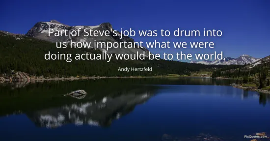 Hertzfeld, Andy. (2026, January 17). Part of Steve's job was to drum into us how important what we were doing actually would be to the world. FixQuotes. https://fixquotes.com/quotes/part-of-steves-job-was-to-drum-into-us-how-39619/