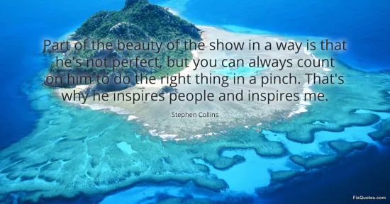 Collins, Stephen. (2026, January 15). Part of the beauty of the show in a way is that he's not perfect, but you can always count on him to do the right thing in a pinch. That's why he inspires people and inspires me. FixQuotes. https://fixquotes.com/quotes/part-of-the-beauty-of-the-show-in-a-way-is-that-156028/